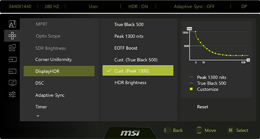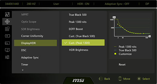 Uniform Luminance grants you fully customizable HDR brightness for precise control on the MAG 341CQP QD-OLED X28. By fine-tuning points on the curves, it prevents sudden, aggressive dimming and ensures seamless transitions, delivering smoother visuals tailored to your preference.