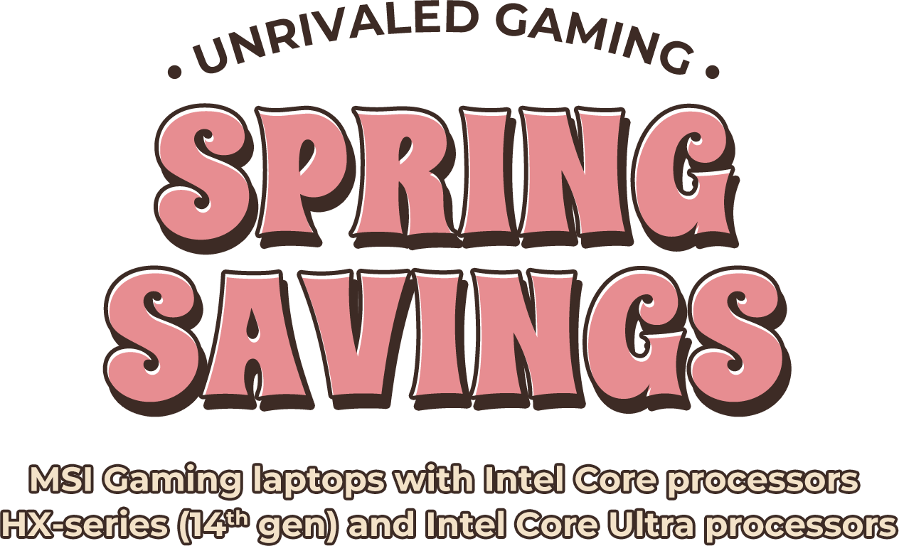 MSI Gaming series laptops with 12th, 13th, 14th gen Intel® Core processors or Intel® Core™ Ultra Processors (eligible models vary by region).