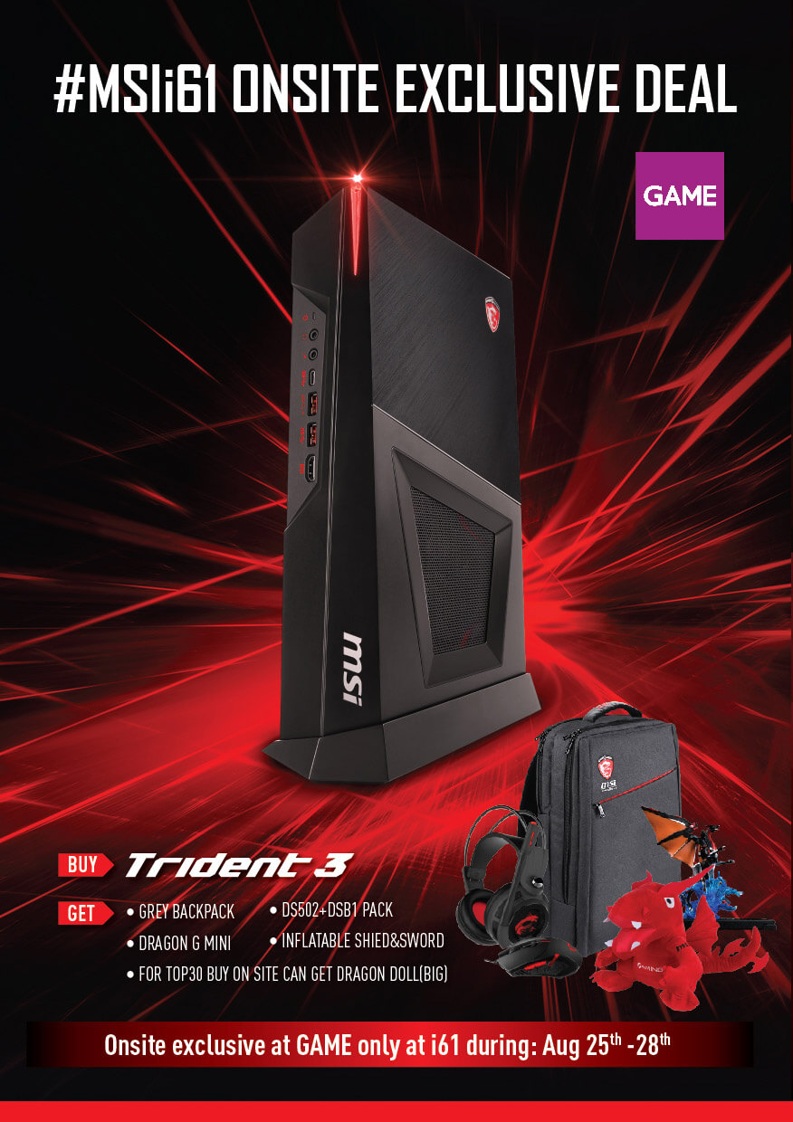 Be our guest! We will be displaying a full range of our best gaming notebooks, desktops and custom built PCs using MSI hardware.