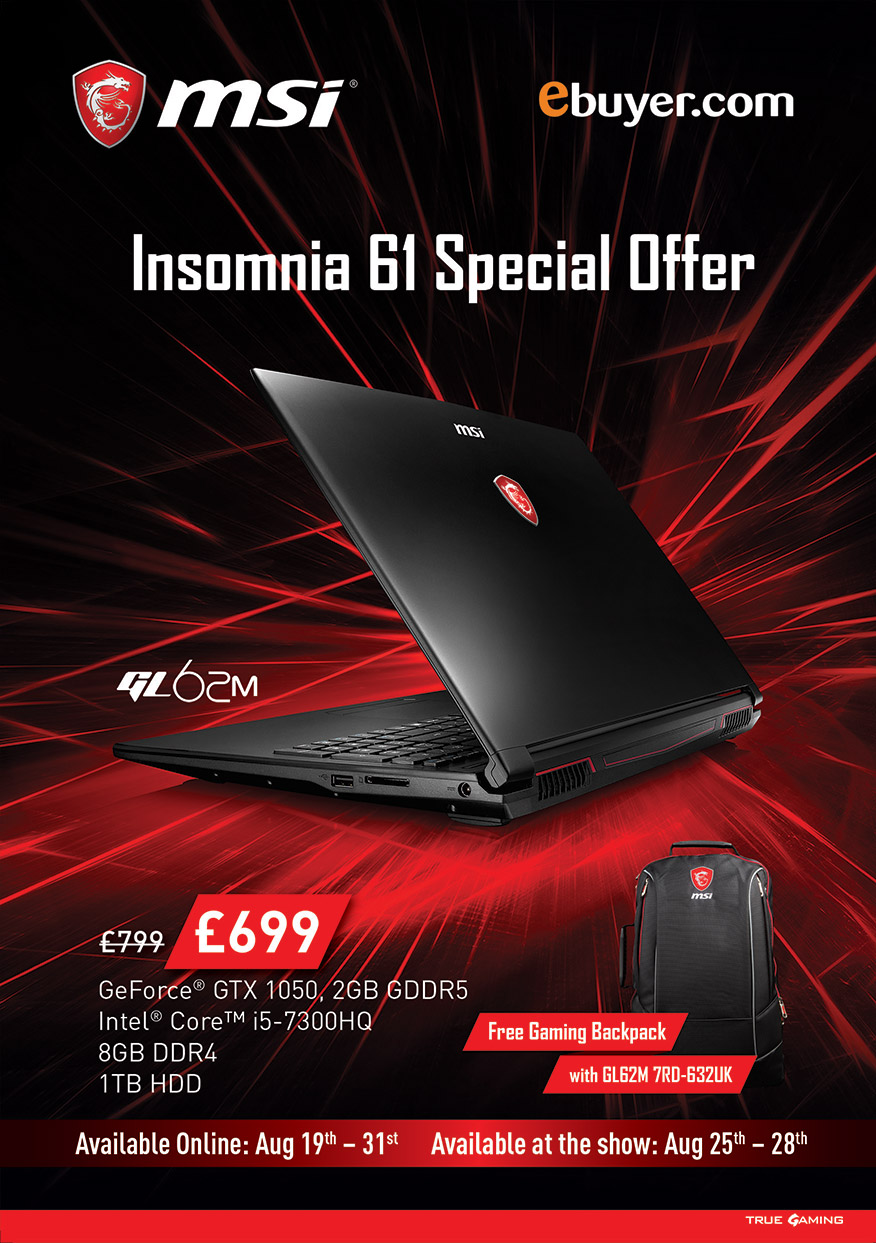 MSI will return to the UK's BIGGEST Gaming Festival, Insomnia61 between 25~28 August.